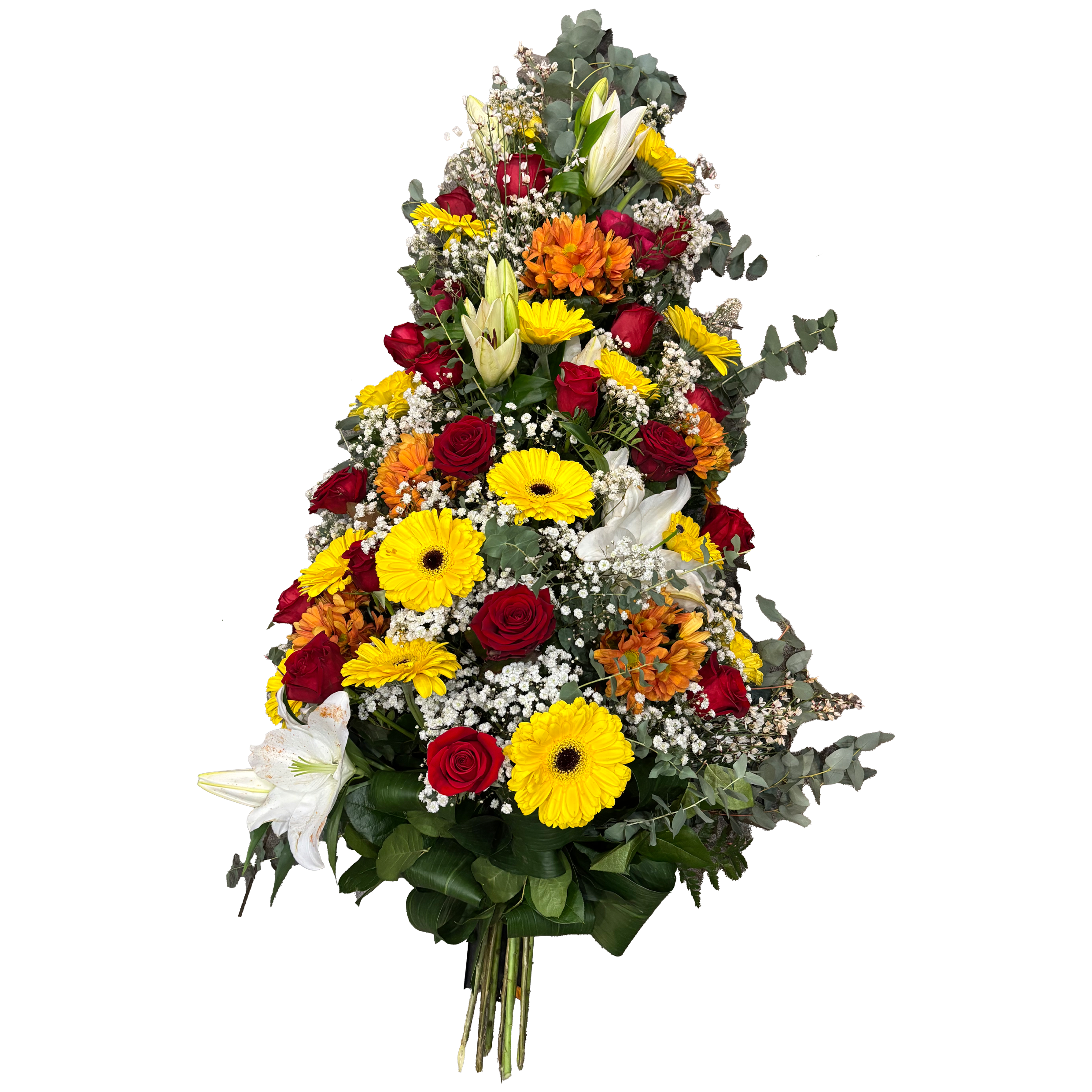 Dessus de cercueil composé de fleurs rouges et blanches